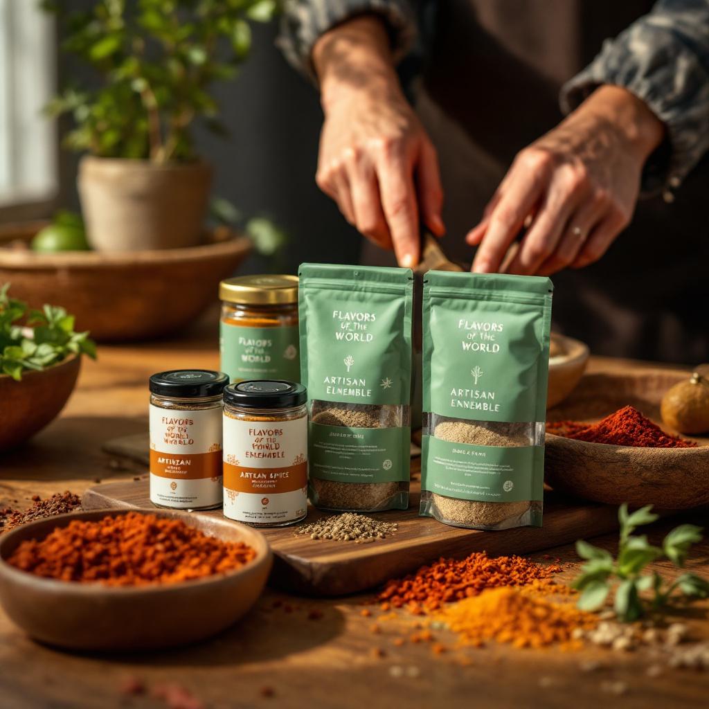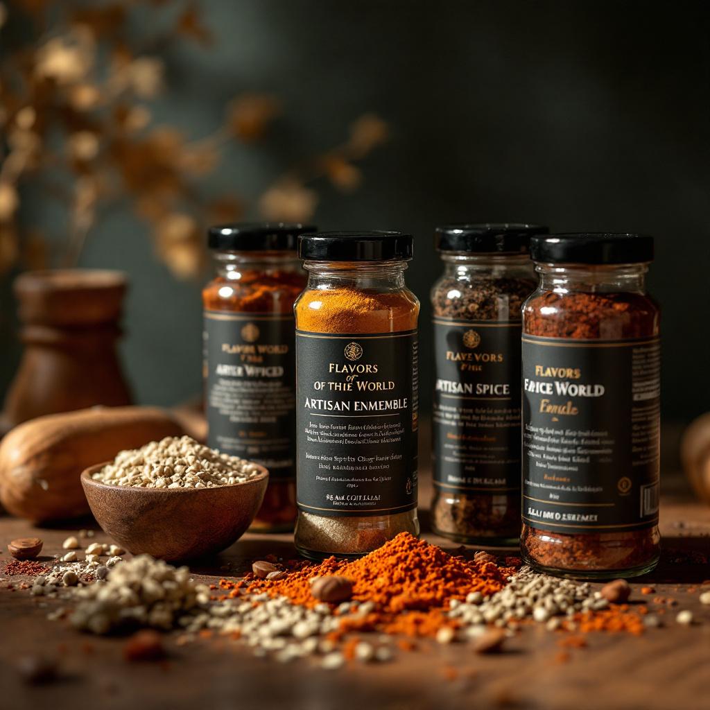 A curated collection of five artisan spice blends, each representing a unique global cuisine.