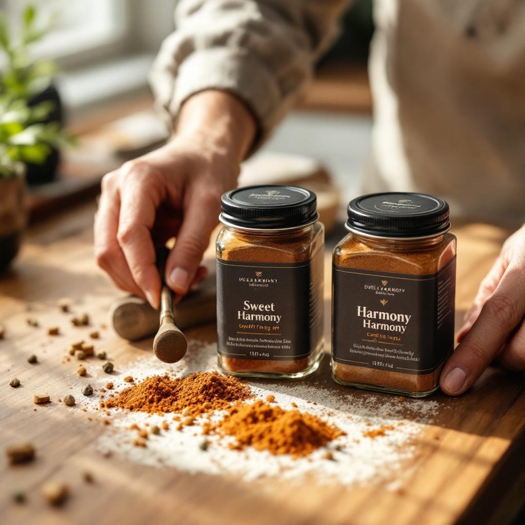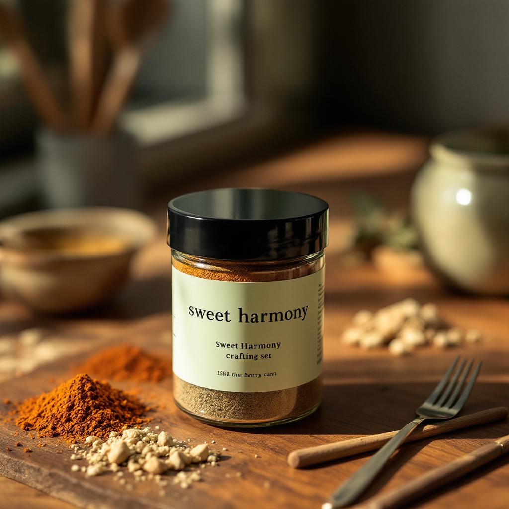 The Sweet Harmony Spice Crafting Set is a meticulously curated selection of artisan spice blends designed for the culinary enthusiast who appreciates the art of flavor. This premium set includes five unique sweet blends, each crafted from sustainably sourced spices, organic sugars, and botanical essentials to create a perfect balance of sweetness and depth. From the warm notes of Madagascar vanilla to the zesty punch of citrus blossom, each blend invites a journey through diverse flavor profiles.